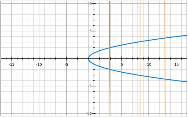 This equation does not pass the vertical line test, so it is not a function. On this graph, most values of x have more than one possible value of y.